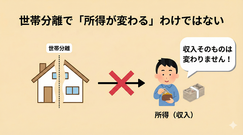 「世帯分離=所得が減る」→ いいえ、減りません。