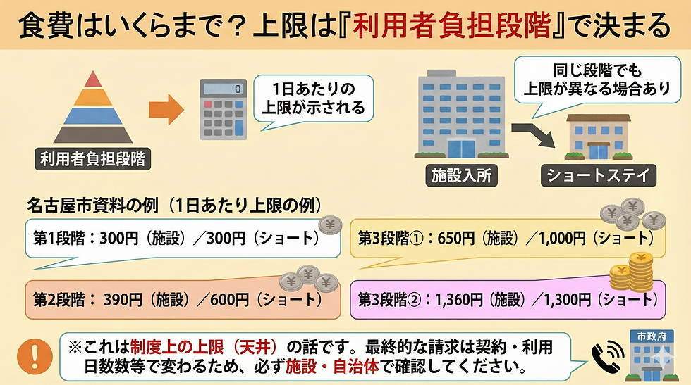 4)食費はいくらまで?上限は「利用者負担段階」で決まる(例:名古屋市)